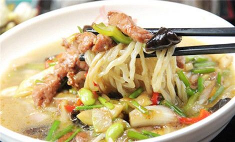 東吳尚城新開(kāi)了一家淮安杠子面,“杠子面”顧名思義是用一根杠子壓制作法而得名。據(jù)說(shuō),這種杠子面,起源于清初,沿到今日久吃不衰,其原始制作工藝是用一根胳膊粗的杠子壓面,杠子的一頭固定在墻里,人騎在另一頭來(lái)壓,這樣壓出來(lái)的面,薄如紙,韌如綢。