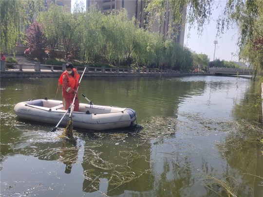 公司根據(jù)各河道水草生長情況,采用“先割后清”、“分段切割,集中打撈”的方法進(jìn)行推進(jìn)式作業(yè),每天組織近30名人員分切割、打撈和清運三個小組集中開展水清打撈清運作業(yè),截止目前,園區(qū)利民河、富民河、十支河、民便河水草已全面清理結(jié)束,蔡莊大溝水計4月底前全面清撈到位,重現(xiàn)園區(qū)“碧波潺潺、河暢水美”的河道景觀。