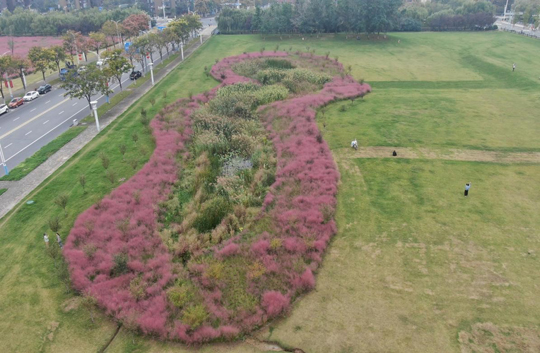 在中央商區(qū),成片的粉黛亂子草正值最佳觀賞期,云霧般的粉色花穗在陽光下輕盈搖曳,已成為市民爭相打卡的“網(wǎng)紅”景點(diǎn)。“粉黛亂子草觀賞性雖高,養(yǎng)護(hù)卻需格外精心。”建發(fā)公司相關(guān)負(fù)責(zé)人介紹,為維持其最佳觀賞狀態(tài),園區(qū)采取了分區(qū)、分時(shí)的精細(xì)化養(yǎng)護(hù)策略。盛花期期間,養(yǎng)護(hù)人員會精準(zhǔn)控制澆水量,避免過多水分影響花穗形態(tài);雨季則及時(shí)排水,嚴(yán)防積水導(dǎo)致爛根。同時(shí),還安排了專人全天巡視,引導(dǎo)游客在指定區(qū)域文明觀賞,并對局部受損區(qū)域?qū)嵤?ldquo;點(diǎn)對點(diǎn)”修復(fù),確保每一株粉黛都能以最美姿態(tài),展現(xiàn)秋天的溫柔與浪漫。