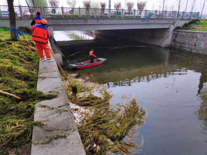 為了加快推進(jìn)河道水草打撈,改善水生態(tài)環(huán)境,公司提前制定水草清撈工作方案,每天組織近30名打撈隊員對河道進(jìn)行拉網(wǎng)式打撈,并及時對打撈的水草進(jìn)行集中清運(yùn),確保水草打撈及時、清運(yùn)及時。