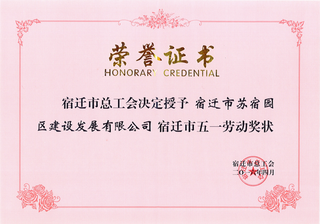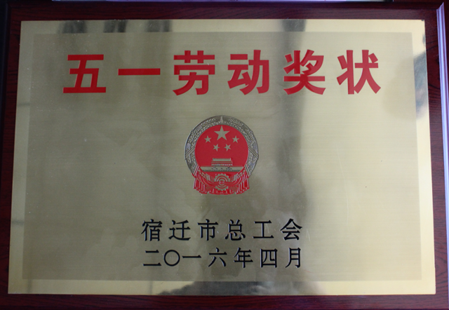 4月29日,在宿遷市慶祝五一國(guó)際勞動(dòng)節(jié)暨表彰五一勞動(dòng)獎(jiǎng)大會(huì)上,公司被授予宿遷市“五一勞動(dòng)獎(jiǎng)狀”榮譽(yù)稱(chēng)號(hào)。