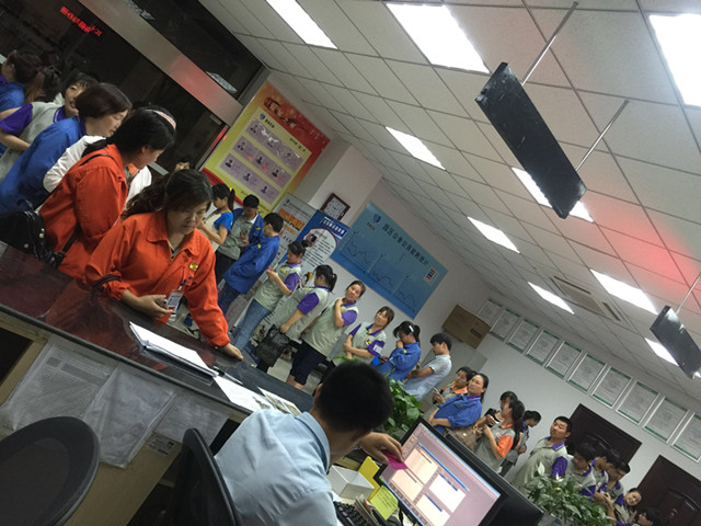 (圖為一站式服務中心排隊辦業(yè)務的住戶)